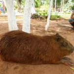We strolled to the park in town to have a look at the capybaras. They are the largest rodent on the planet and they are basically gerbils the size of wild boars. Three of them are best buds, just hanging out all day in the park and in the water. When they get anxious they make a noise similar to the sound of an old fashioned retracting dial phone. They are wild, but the park capybaras are pretty much pets.