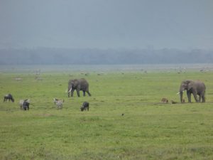 - Everyone together: elephants, wildebeest, zebras, warthogs and hyenas.