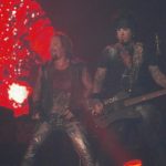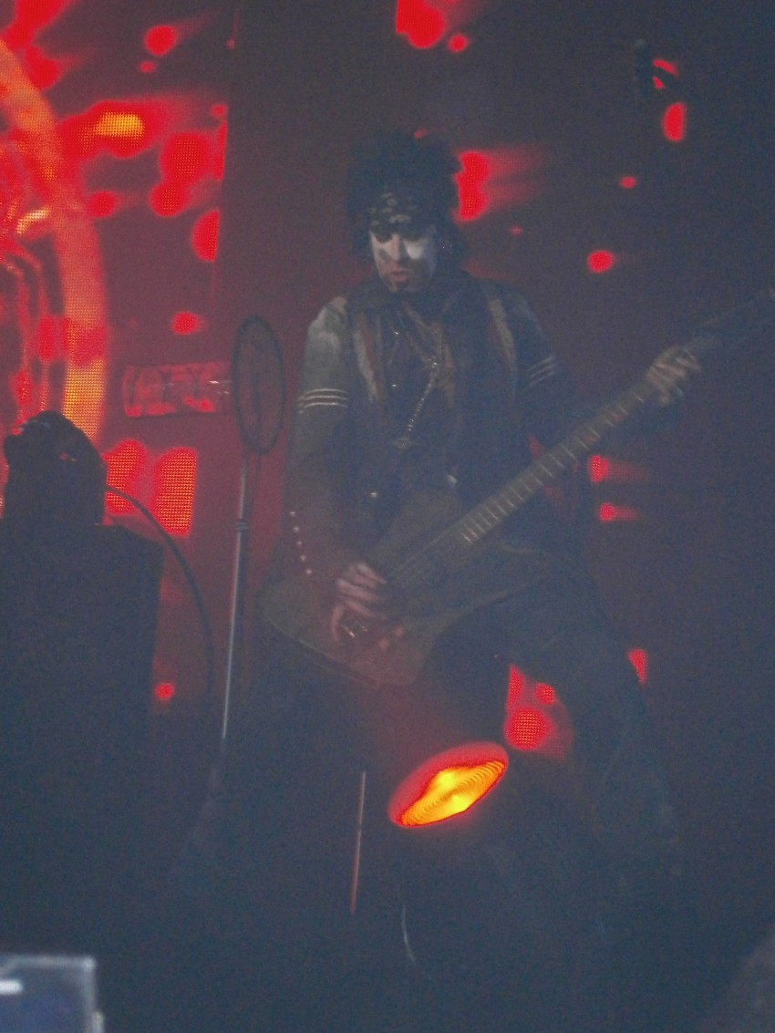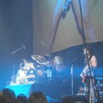 Manfred returned and Mötley Crüe came out. They stared with a bang. They sounded great. However, the show did not hold up. Vince Neil cannot hold the high octaves anymore and his voice falls through them, and Mick Mars is very frail. Suddenly Manfred said to me, “Holy man, I ran into Mick Mars backstage. I seen an old hunched over man being escorted to the stage because he could harldy walk, and now I realize it was Mick Mars.” Mick was having trouble with is parts at times, and he played out of key sometimes, and at one point we could hear Tommy screaming “Stop! Stop!” at Mars from his drum riser. They played ‘Home Sweet Home’ and I was surprised to see that Tommy Lee plays the piano in that song. But, my opinion of Mötley Crüe fell apart during the show. They were barely holding it together. Tommy’s crazy upsidedown drum solo featured a dude he picked from the crowd to come and ride with him. Basically, all Mötley Crüe did was swear and cuss. They could not string sentences of more than 6 words together in a row. Thirty years of cocaine, heroin, and alcohol has burned those guys out. The best part of the show was Manfred singing, ‘eating in the dish-room’ as a reference to misbehaving at work for the chorus of ‘Smoking in the Boy’s Room.’ Nikki Sixx was spitting water on the crowd in front of him, and then he came out with a camel-back on, and we spitting pre-loaded blood red water on the crowd, over and over again. At the end of the show they threw buckets of blood-red water on the crowd in front. Really, are you guys not 50 years old…?