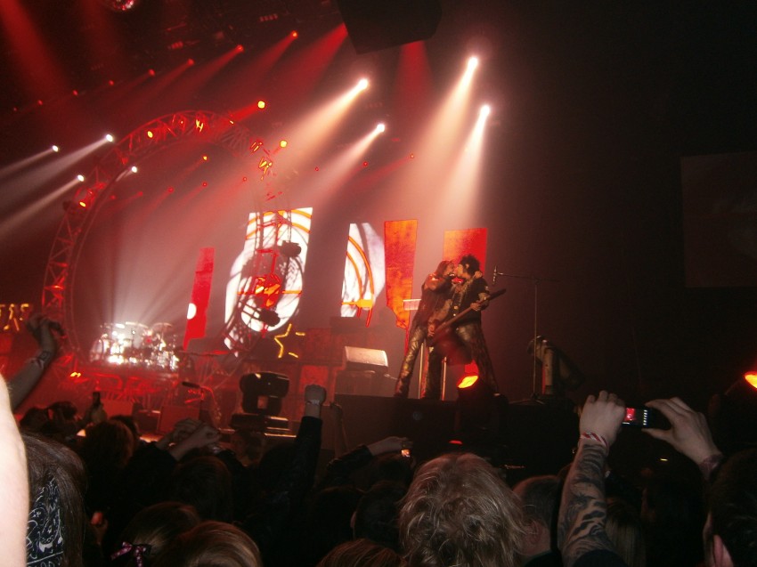 Two days later, my friend Manfred and I went to Wembley arena, and the California couple were sending me texts, and hoped to meet us inside the venue. We had floor tickets and went to the front of the stage, next to the ‘backstage pass’ entrance. The couple came out from the backstage entrance with their backstage stickers stuck to their shirts, found us, and hung out with us just before Steel Panther came on stage. With the couple was Satchel’s brother. It was pretty awesome to be standing next to the brother of the guitar player on stage who writes all of those lyrics and the music that 12,000 people were enjoying with us. I asked him if it was the biggest show he had ever seen his brother play. He confirmed and showed me the goosebumps on his arms. That gave me goosebumps. The show was incredible. Steel Panther are very funny guys. Their songs are over the top and their comedy act between songs is pure raunch entertainment. They say things that every man wants to say, but never says aloud for fear of scandalous looks and female persecution. Steel Panther rocked. I am going to cover their ‘Community Property’ to sing and play at parties when there is a guitar laying around to entertain those sitting in close proximity.