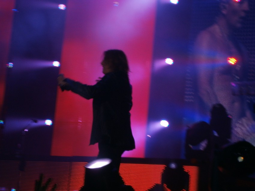 After they finished and the set change from Steel Panther to Mötley Crüe was taking place, my friend from California slapped his backstage pass sticker on my shirt. Then he told his friend to take off his backstage pass and give it to Manfred so that we could go back and look around together as the sets changed. His friend looked at him like he was crazy and was not even considering sharing the backstage pass with us. Our buddy said, “They are not going to run off… Fine, go one at a time then…” So, I went for a tour of the backstage. I went on the stage and was standing near the middle of it and there were 12,000 people in front of me. That was a crazy feeling. Then I walked around on the stage, and walked behind Steel Panther’s stage drop to the Mötley Crüe section of the stage. I went up to Tommy Lee’s drum kit and took some pictures of it on its revolving-circle-roller-coaster. I walked around and took pictures of their guitars and just watched the Changing of the Guards that was taking place from band to band. It is sort of freaky back there and you never knew who was who and who was going to tap you and the shoulder and say “Hey, who are you?” “Me, I am Nobody.” “Well, Nobody, we will be throwing you out now,” and then get kicked out the venue and lose our friend’s backstage pass and he wants to kill my friend who is waiting with him when I do not return. So, I eventually headed back to the ‘common-folk’ area so that Manfred could have a go back there.