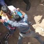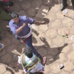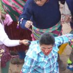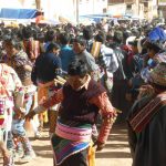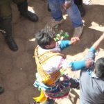 Fights take between a man from the highlands versus a man from the lowlands, one on one, both of equal size and age. Each fight lasted for about 30 seconds and there was a lot of blood. The action was attempt-controlled by indigenous police officers who all had whips in their hands. The whips were made from ropes with huge knots in the end or else rubber machinery belts which they used to keep people back and maintain crowd control. There were a couple of more fights and then the scene returned to the same two chord flute music and dancing in the square. ‘Ching ching chang. Ching ching chang. Ching ching chang,’ over and over and over, while kicking up so much dust in their circle dance that it became hard to breathe and everyone in the watching crowd was coughing.