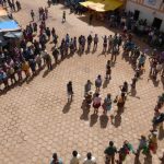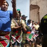 - Villagers circle dance to announce their arrival in Macha.