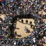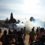 Historically, the police used to get beat up at this festival as there used to only be five or six of them to control the entire adrenalized festival. Now, there are many police and they have reasonable control of the crowd, except that things do get beyond their tried restraints several times throughout the day. When the whips do not control the chaos they use the pepper spray. And when pepper spray does not disperse a crowd getting too unruly from the fighting, teargas does the job. All of a sudden, you hear the sound of a small explosion. Then a bomb of smoke goes off, and that tear gas is incredibly effective. I had thought that there could not really be anything worse than pepper spray but I was in for a very uncomfortable surprise…