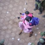 I was with four of my English friends and we knew it was trouble as soon as we heard the blast. The teargas smoke began to fill the air, so we tried to get away as quickly as we could. We started heading for a side street, and I thought to myself, ‘Well now, you have never seen teargas before. Maybe you should stop moving for a moment to take a picture of it.’ Click. I thought it was still a safe distance from me, and I doubt if I would have been able to outrun it anyway, but when that teargas got to me, it went into my lungs and into my eyes. I was running partially blinded trying to get away and I could not breathe. I was vomiting into my mouth and gagging, trying to get any air into my lungs that I could. I had just enough vision that I could see the shape of the running crowd and I ran after them. I could see the ground and I could make out my feet and I just tried to keep running. My eyes burned so much and with no breath in my lungs I wondered what would happen if I fell down. Would I die? Would tear gas kill me if I could not escape it? Would I suffocate? I was fighting with these thoughts, running, trying to find air as we ran down a street in between buildings. It was too scary to think and no one running had time to take a moment to think about which way we were running. We were just running and it turned out that we were actually running downwind from the teargas and it was just following us. Terror was going through me when I saw an open gate behind a building on the street so I dove into the open space, hoping the buildings structures would keep the teargas going past and the air inside of the gate would be fresh. It turned out that I was in someone’s backyard, and as I tried to focus, there were Bolivian’s calling to me as soon as they seen me, “Gringo, Gringo! Come here. Come!” My eyes were burning so much that once I could find fresh air, I could no longer move. The pain in my eyes was immense. It took 5 minutes of standing there before I could really open my eyelids again.