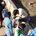 Villages of people were arriving one by one for the Tinku Fighting Festival in Macha, Bolivia, the small, dusty, town where we were staying. Everyone was dressed in bright colors to represent their communities and dancing and music was everywhere, though the music was one song played over and over again with flutes and a Bolivian mandolin. Macha, is a town of approximately 1,600 people, but roughly 3,000 people from other villages come to participate in the fighting festival to take place after the annual harvest finishes.